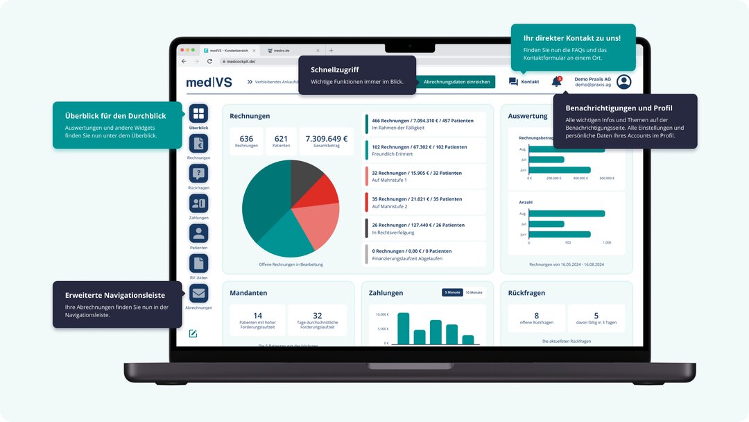 Das MedCockpit wurde im Hinblick auf visuelle Darstellung und Nutzerfreundlichkeit einer umfangreichen Überarbeitung unterzogen. Alle Funktionalitäten bleiben bestehen, wurden aber zum Zweck einer intuitiveren und flüssigeren Bedienung verbessert und um weitere sinnvolle Funktionalitäten ergänzt. Im Nachfolgenden geben wir eine kurze Übersicht über die wichtigsten Updates und deren Vorteile: